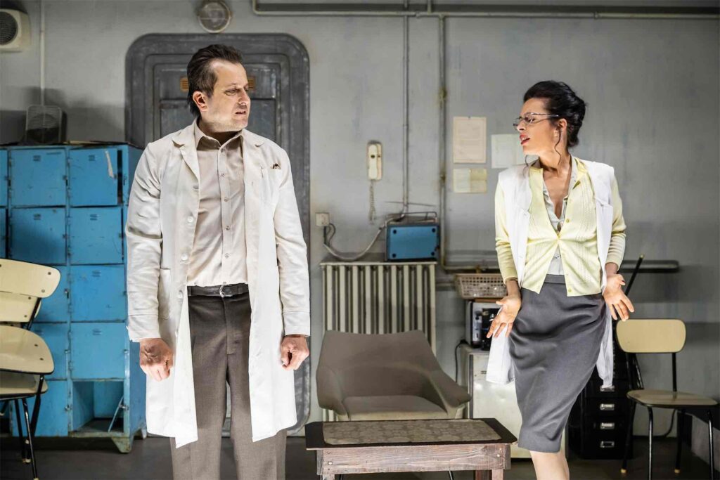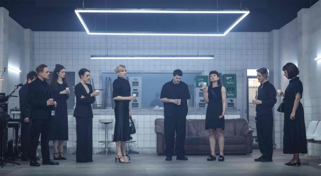 Kiváló alakításokat láthattunk. Az első előadáson voltunk ugyan, de ennek ellenére a társulat játéka bámulatosan összeszedett volt. Pelsőczi Réka (Erika) tűpontosan hozza a munkájába belefásult, magányos, gyötrődő lelkivilágú doktornőt. Simon Zoltán (Iván) a diplomás, de céltalan, a szexrandik világába menekülő szomszéd srác szerepében brillírozik – karakterében ott van egy egész elveszett generáció szorongása. Kanyó Kata (Emma) ismét bizonyítja, hogy Tarnóczi organikus, improvizatívnak tűnő világában ő az egyik legtermészetesebben mozgó színész. Szirtes Ági (Olga) és Borbély Alexandra (Noémi) is remekül adaptálódott ehhez a különleges, kihívásokkal teli játékstílushoz, technikai tudásuk mellett őszinték tudnak maradni. Szirtes kiváló a sorsával megbékélt Olga szerepében, ő elért mindent, amit elérhetett, ő jutott a legmagasabbra a családból, kissé szorongató mérce is a többieknek. Lengyel Benjámin remekül hozza Dezső hipochondriáját és kapcsolat nélküli bizonytalanságát; jó látni, ahogy kinyílik, amint valaki érdeklődik iránta. Hajna karaktere is tökéletesen érthető Pálmai Anna prezentálásában, ő a szó szoros értelmében érzelmi intelligenciájával küzdi fel magát, a saját jogán, egy egészen másfajta háttérből érkezve. Keresztes Tamás pedig azonosul Olga fia, András nem ebbe a világba illő, tehetségét nem is ehhez a világhoz mérten használó személyiségével. Nincs meg benne az anyja talpraesettsége, és ez a létidegenség bénító hendikepként nehezedik rá. Mind esendők, teli jó és rossz emberi tulajdonságokkal, de az utolsó jelenetben mind szerethetővé válnak, eljutunk a megértésükhöz, empátiával tekintünk rájuk.