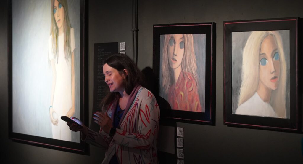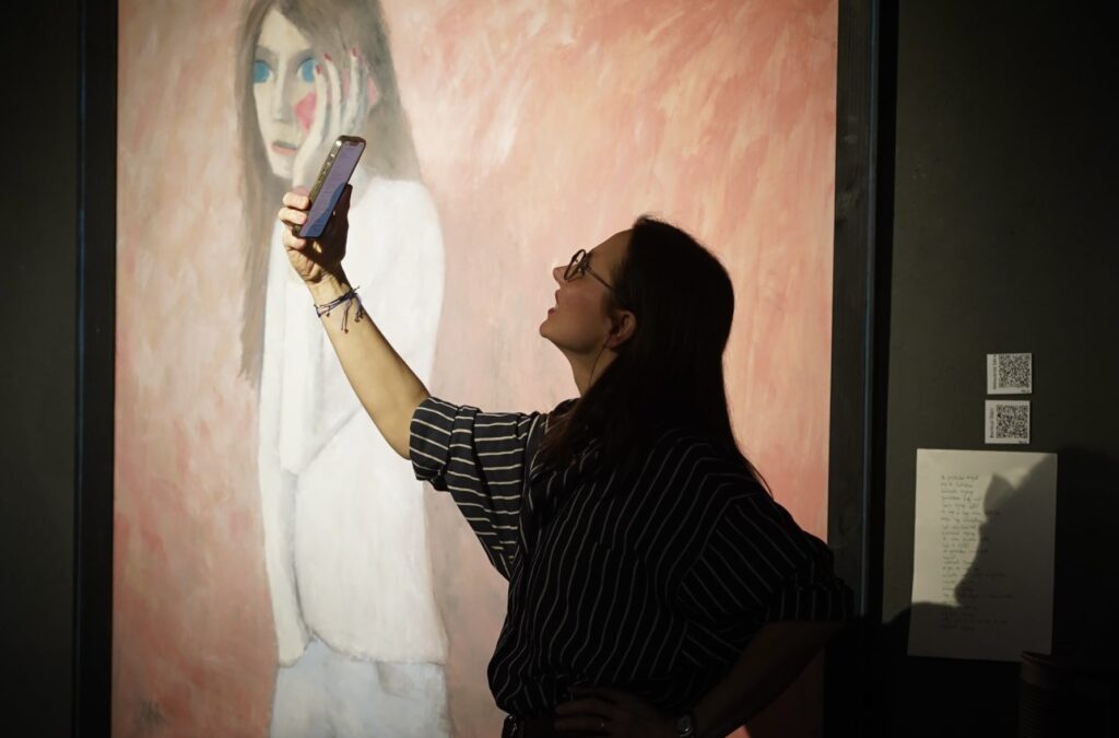 Aki pedig olyankor esik be, amikor nincs élő akció, annak ott a technika. Okostelefon, fejhallgató, QR-kód – és már indulhat is a multimédiás trip. A festmények alakjai akkor is megelevenednek a vers-álom töredékekben, és ez egy megint másfajta mélység, amikor magányosan, a térben sétálva hallgatod a verseket. Sőt, vannak szövegek, amiket több színésznő előadásában is összehasonlíthatsz, ha van türelmed hozzá. Akár több kör is benne van, újrajárhatod a történetet, újabb szöveget választhatsz az úthoz, újabb előadóval, amíg el nem fáradsz.